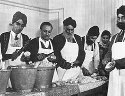 "When I came in 1921, there were no boys in this area (Vancouver). Two boys lived in Abbotsford, Pritam Singh and Nand Singh. Then when four of us boys landed together the Canadian Sikhs were so happy. They kept saying, 'Our boys, our boys.' They couldn't do enough for us. I felt so much love for these people, they treated us so well. Whenever I went to the 2nd Avenue Gurdwara, they treated me so special. The first time I stood in line to eat roti in the langer, one old-timer took me by the arm and took me in to the centre of the hall in front of everybody. He said to me, 'My son, we want you to serve us roti so that all of us can get to see and meet you. You'll get to know us and we'll get to know you.' When I went around serving the roti they made us feel so special. They were such loving people."(Gurbachan Singh Johl)